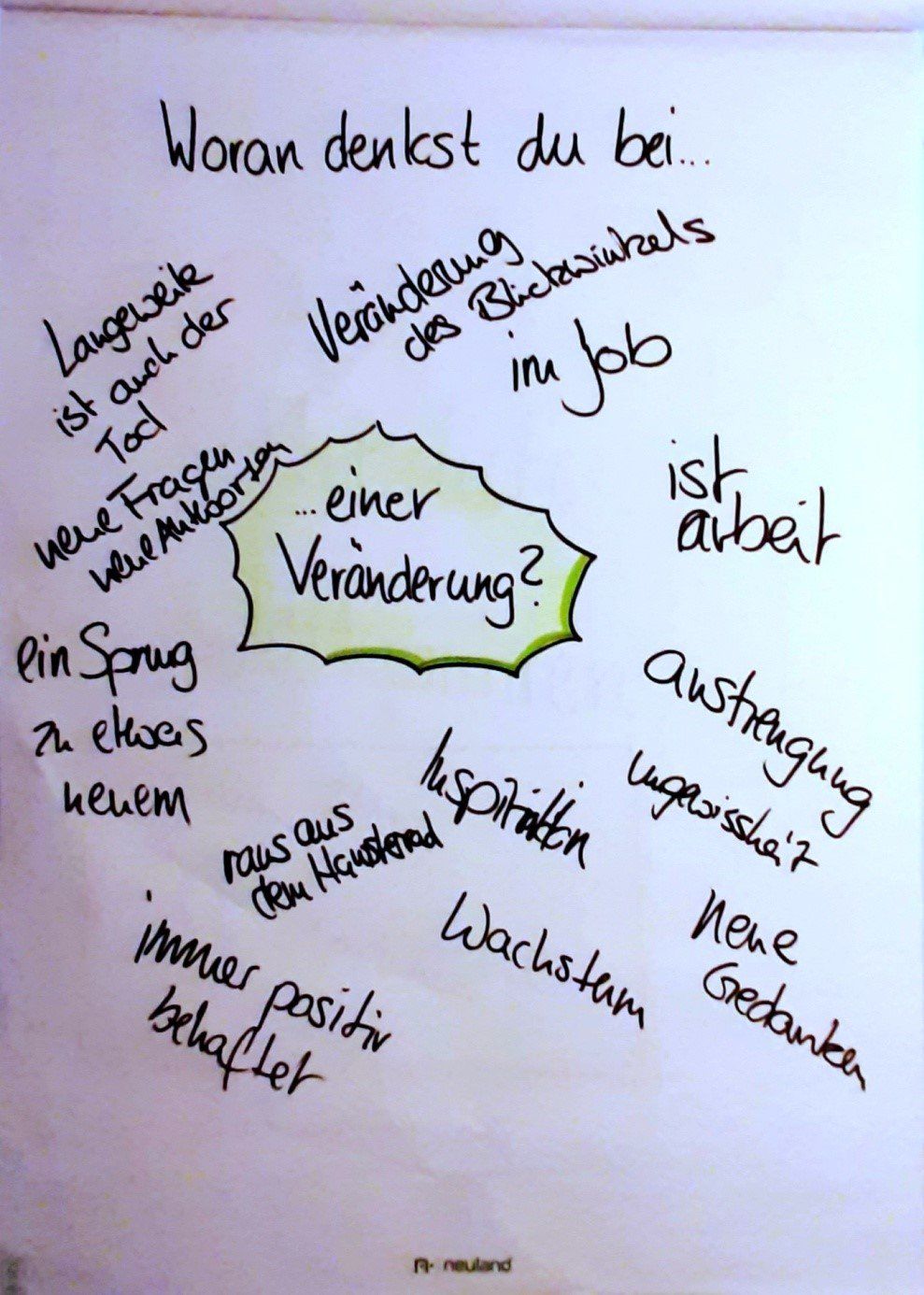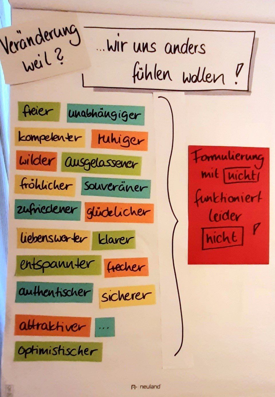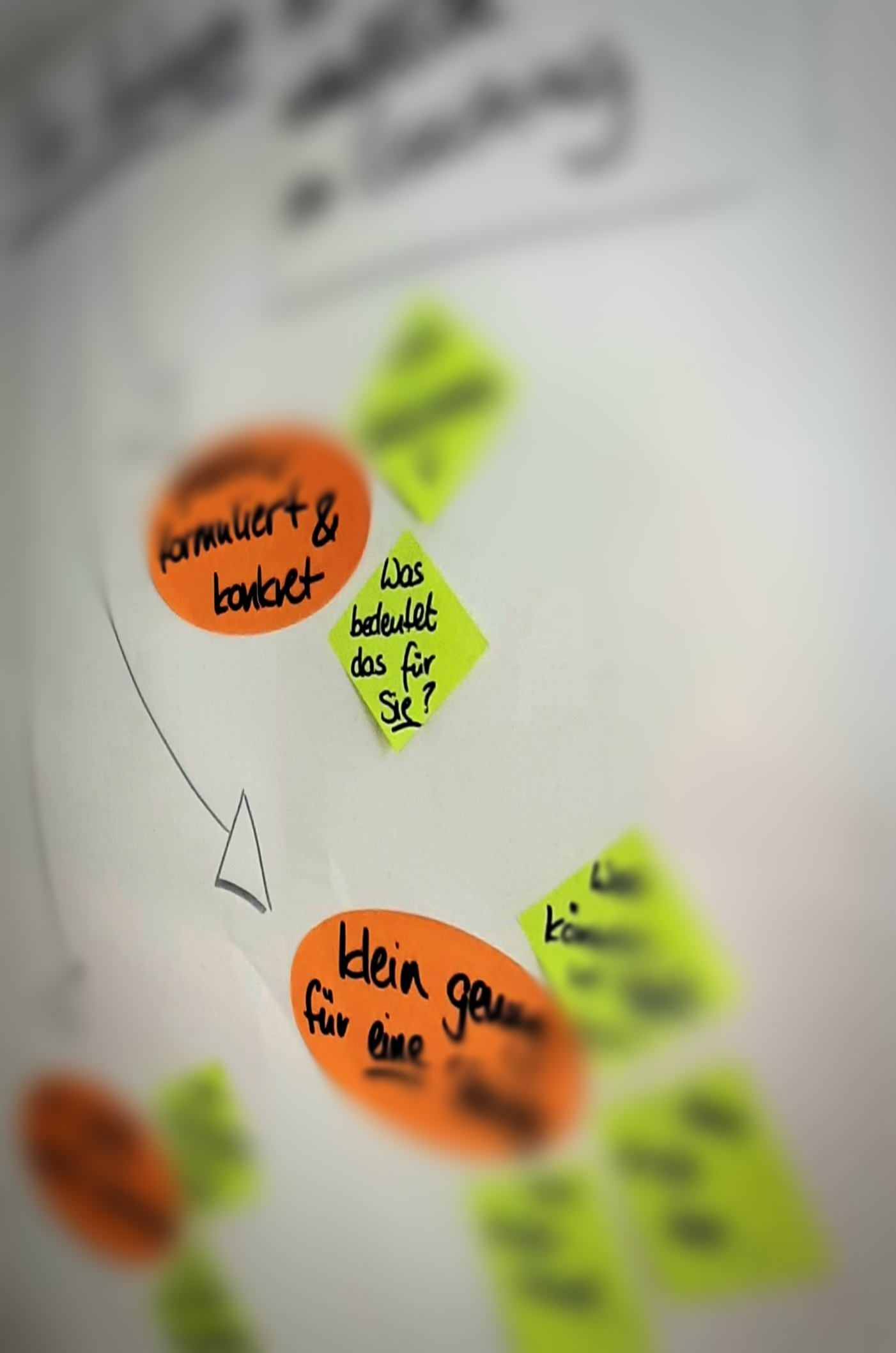 Die Flipchart durch bewegliche Elemente während des Vortrages entstehen zu lassen hilft uns zu dem dabei die Aufmerksamkeit jederzeit auf den aktuellen Aspekt zu fokussieren, die Inhalte pointiert und lebendig zu präsentieren und gezielte Reflektionsmomente und Konzentrationspausen einzubauen.